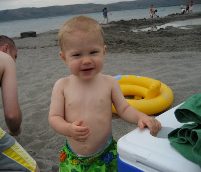 He loves to wear his sunglasses (the ones from his Uncle Nathan and Aunt Rebekah!!) and as soon as we put them he flashes us the "cool dude" sign-which he does by sticking out his thumb and forefinger (spread out like a peace sign. Apparently a simple thumbs up doesn't do his coolness justice). The other day when we were at the pool we told him he couldn't walk past where the fence ended. So he walked to the very edge of where the fence was and just stood there. He had his sunglasses on and a little girl walked up to him and they were just staring at each other (like little kids do...always trying to figure the other one out or something), when he started pointing past the fence. He would point and then look back at her over and over as if he was trying to tell her that they should walk over there together. After a couple seconds of getting no response from the girl he flashed her his "cool dude" sign, shruged his shoulders and walked away as if to say, "Whatever, you don't want to walk with me, I'm too cool for you anyways!" We were laughing so hard!