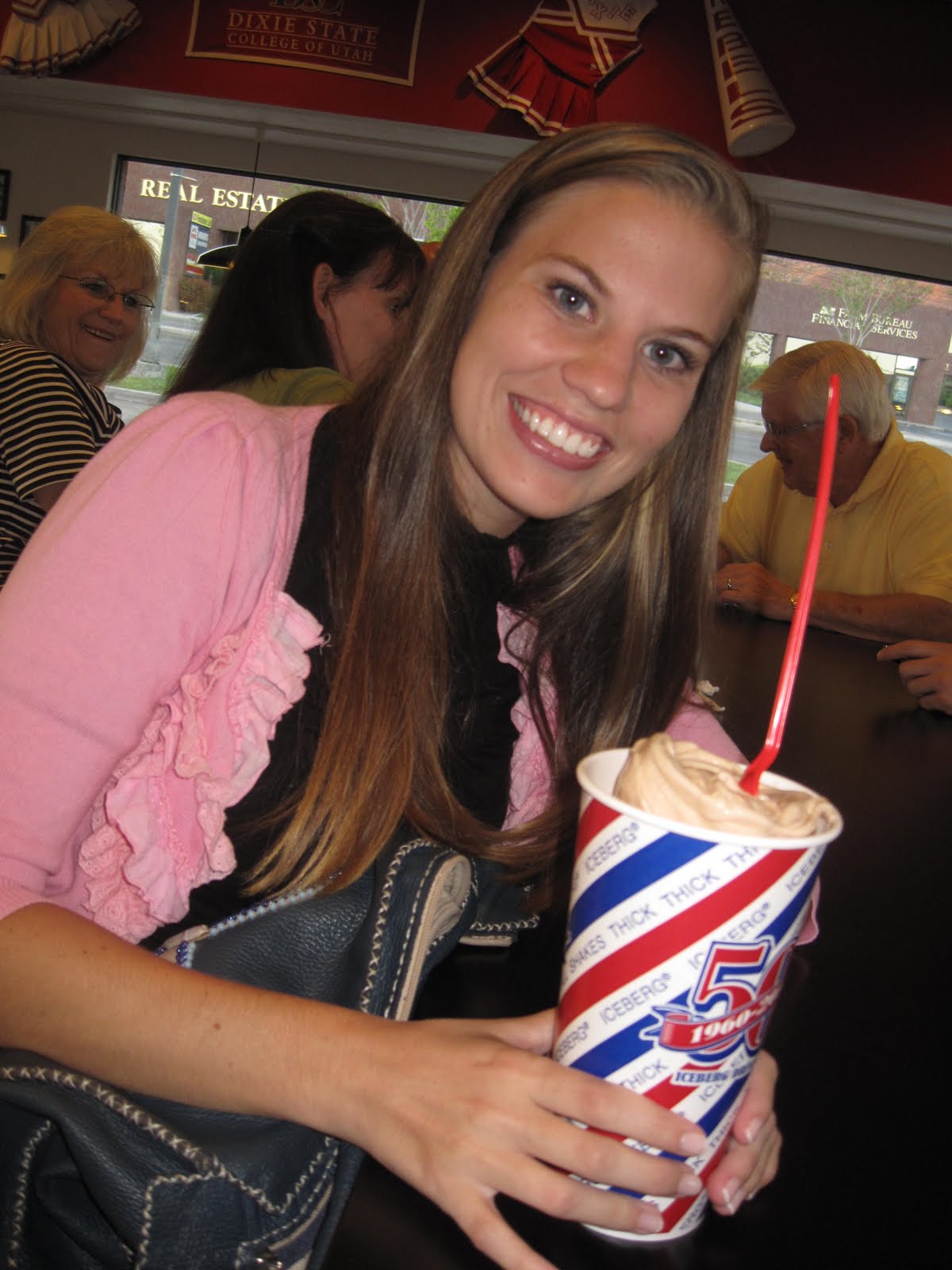 We had wanted to go to TX Roadhouse for dinner (her plane arrived at 4:45 on Fri. April 15th) but there was a 2 hr wait so we opted for quick and easy. How about we re-introduce Amanda to American cuisine with a shake the size of your head. Perfect.